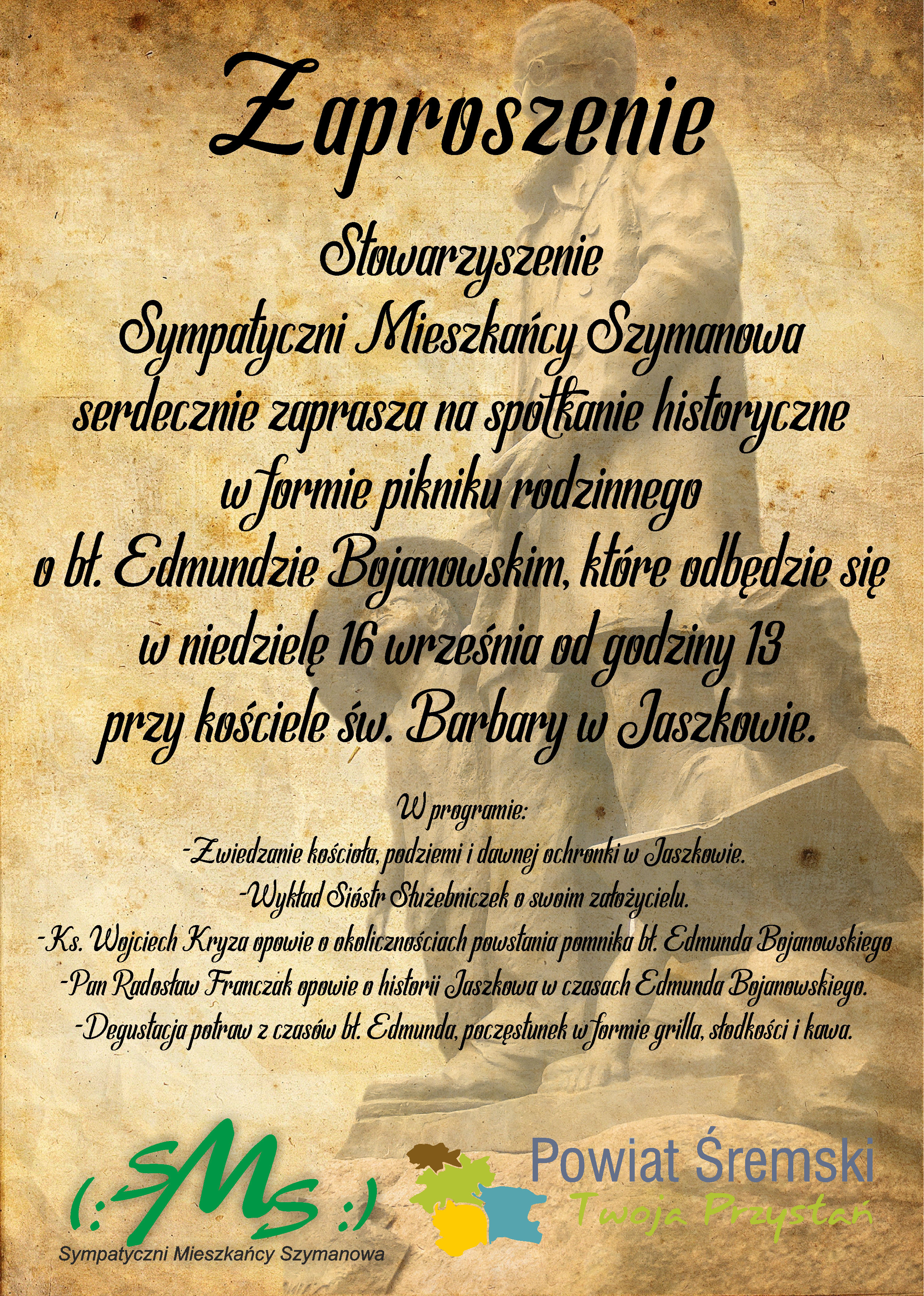W niedziele 16 września 2018r w Jaszkowie zorganizowaliśmy pierwsze spotkanie historyczne w formie pikniku rodzinnego o bł. Edmundzie Bojanowskim. Frekwencja na spotkaniu była bardzo duża. W ciągu całego wydarzenia przewinęło się około 170 osób.