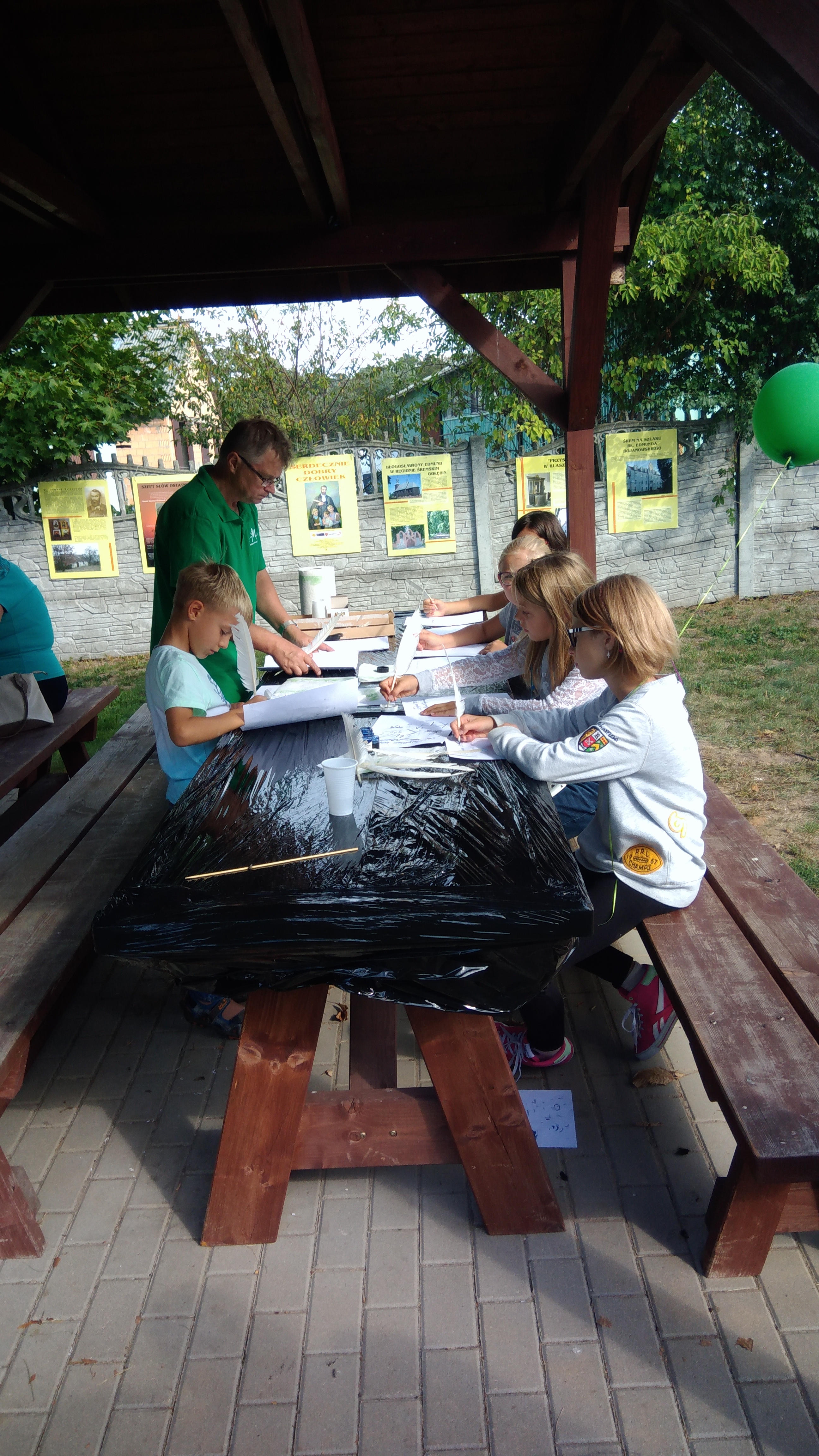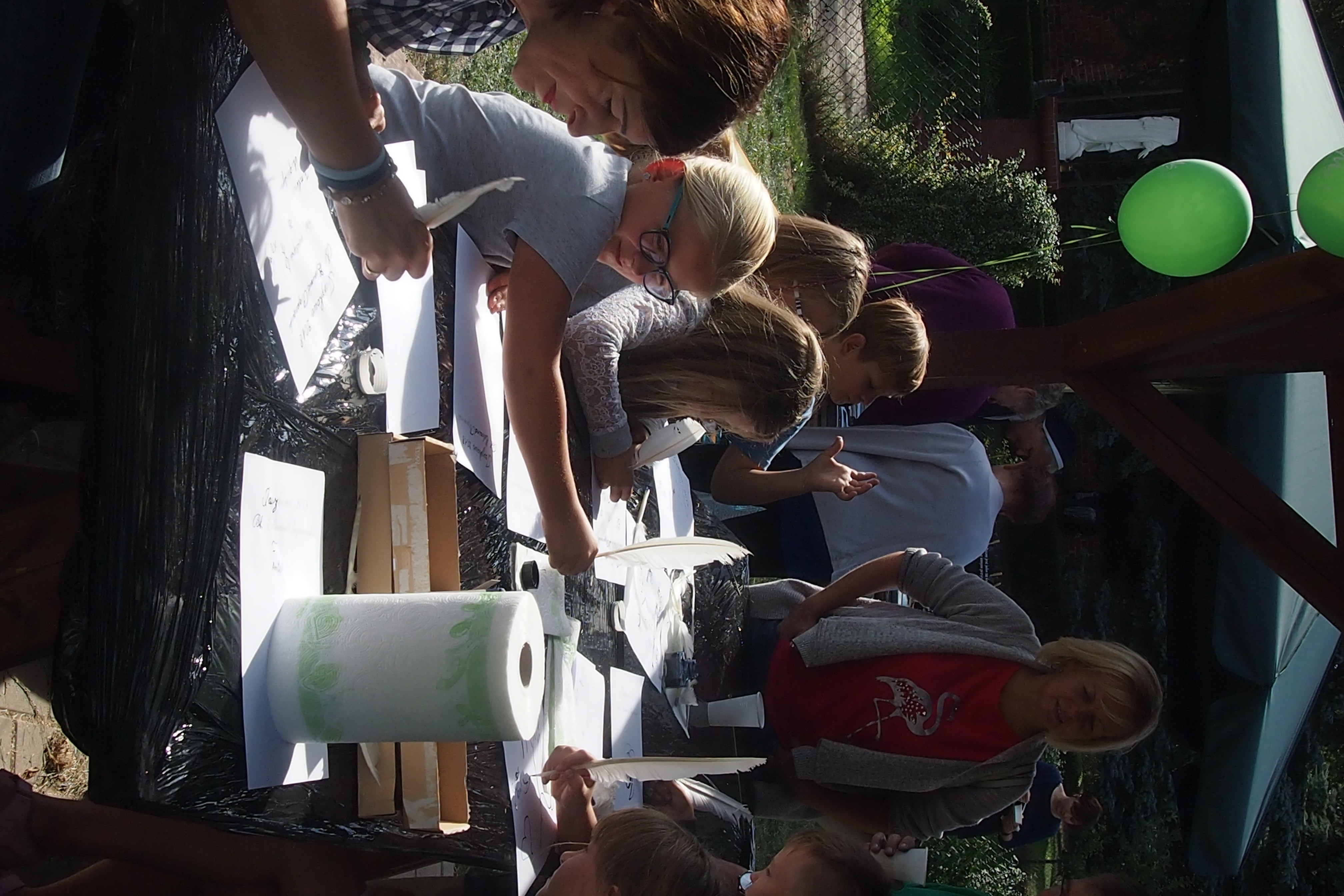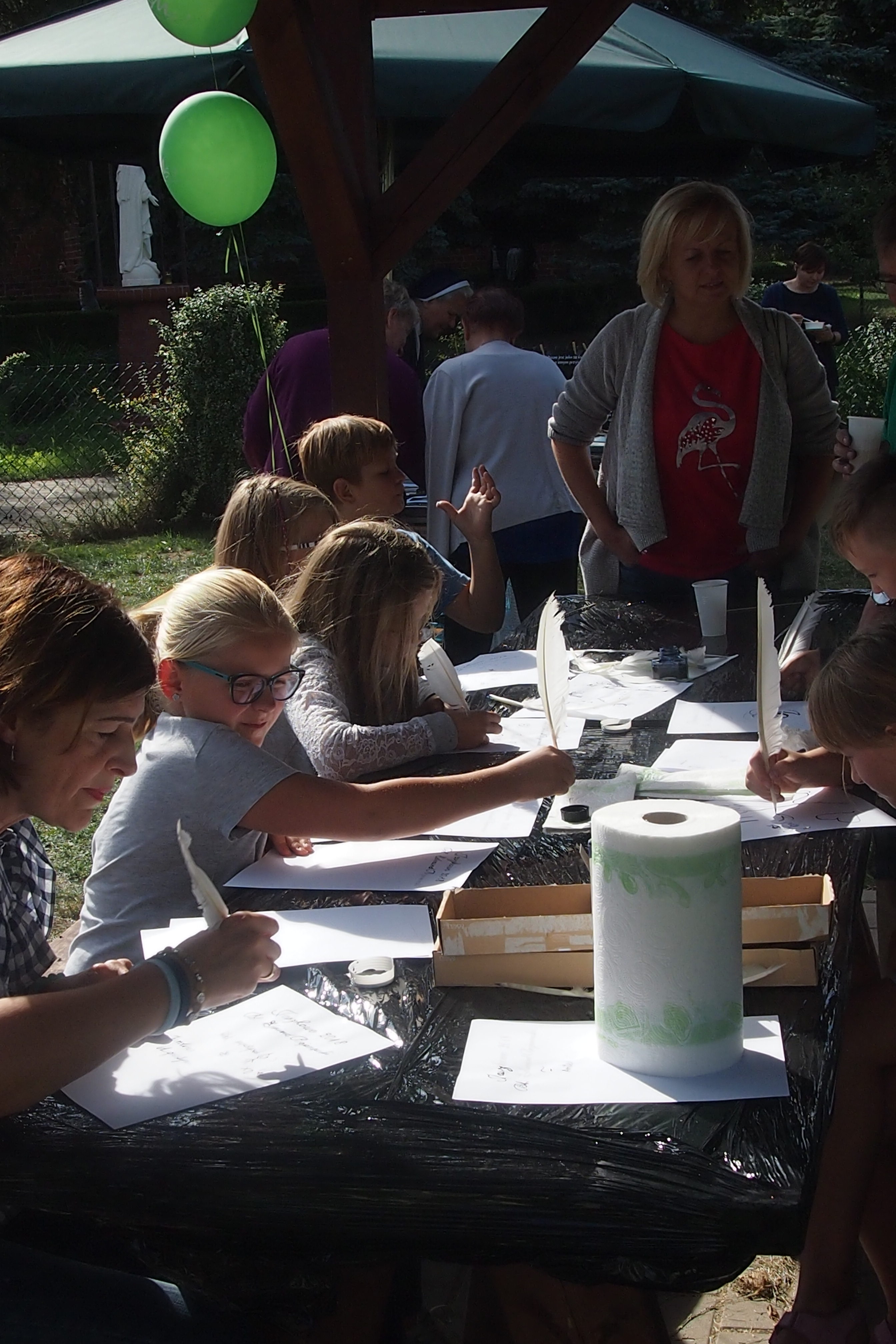 Dzieci zaprosiliśmy na warsztaty pisania, kaligrafii piórem gęsim. Cudnie się bawili, dorośli również.