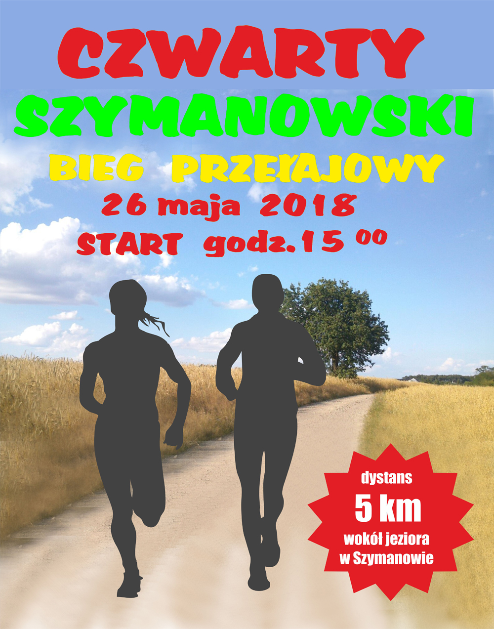 Stowarzyszenie Sympatyczni Mieszkańcy Szymanowa serdecznie zaprasza w dniu 26 maja 2018r na IV Szymanowski Bieg Przełajowy wokół tutejszego jeziora.